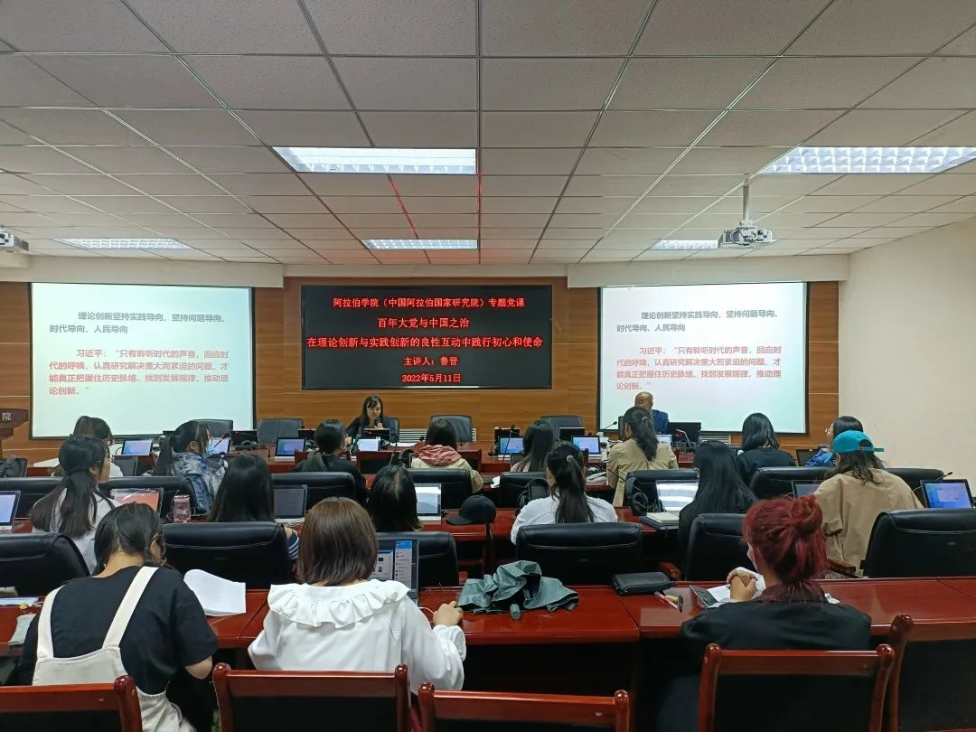 5月11日14:30,3044am永利(中国阿拉伯国家研究院)在文萃校区知行楼8楼学术报告厅举行“第八期发展对象培训班”专题党课。学院邀请304am永利集团专职组织员鲁晋老师作了《百年大党与中国之治:在理论创新与实践创新的良性互动中践行初心和使命》专题辅导报告。3044am永利党总支书记李海燕、副书记赵永军、副院长金忠杰、学办主任金宁洋、第八期发展对象培训班学员、学生党员参加报告会。会议由李海燕书记主持。