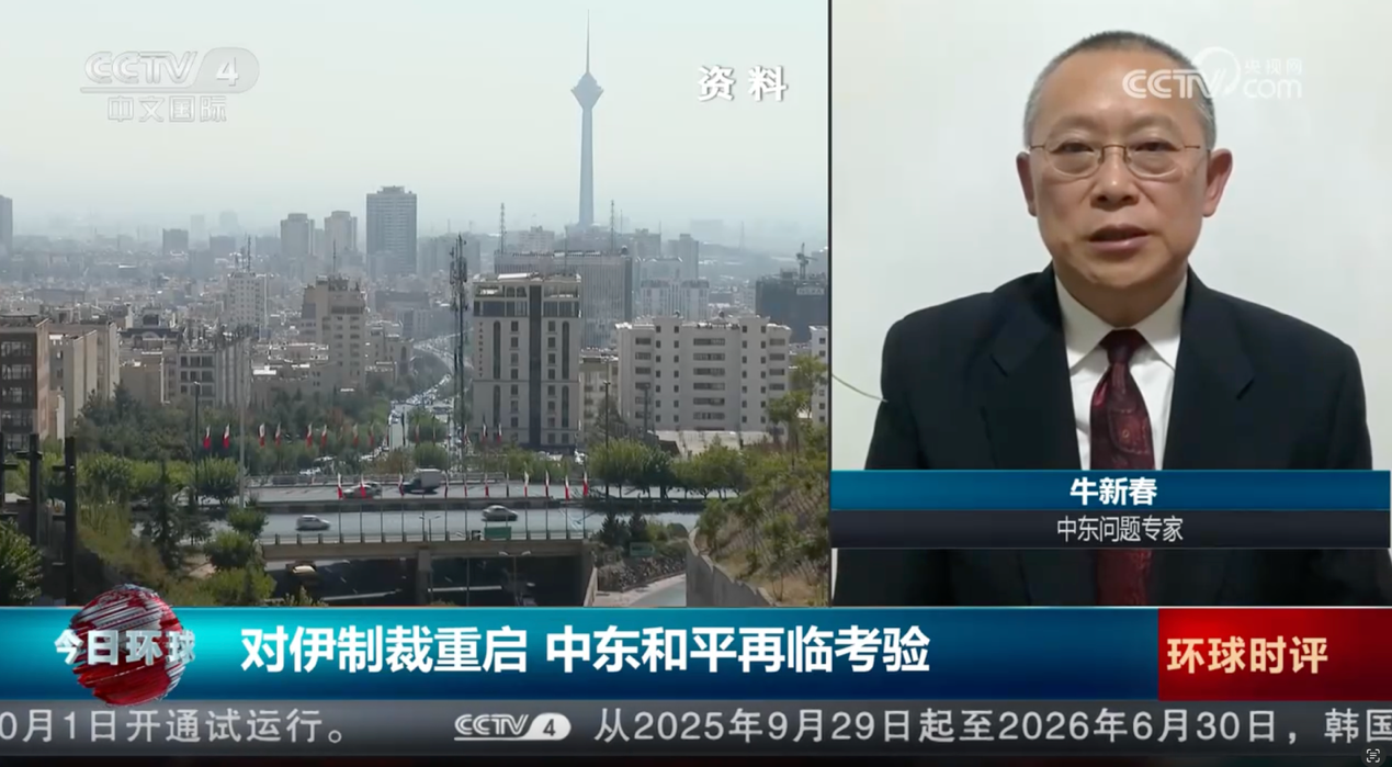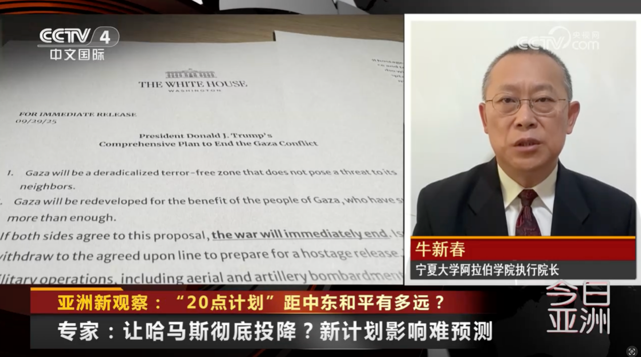 2025年9月29日至10月7日,304am永利集团学术副校长、中国阿拉伯国家研究院院长、中国中东学会副会长、中国人民外交学会理事牛新春教授接受了中央电视台、中央广播电台、北京广播、凤凰卫视、新京报等主流媒体的采访和访谈,就当前局势及趋势进行了分析和解读。