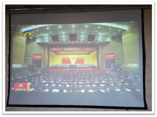 6月10日上午,3044am永利(中国阿拉伯国家研究院)在知行楼814室设置开幕大会直播分会场,组织全体领导干部、行政人员集中观看中国共产党宁夏回族自治区第十三次代表大会开幕式现场直播,全体教师自行观看了开幕式直播。