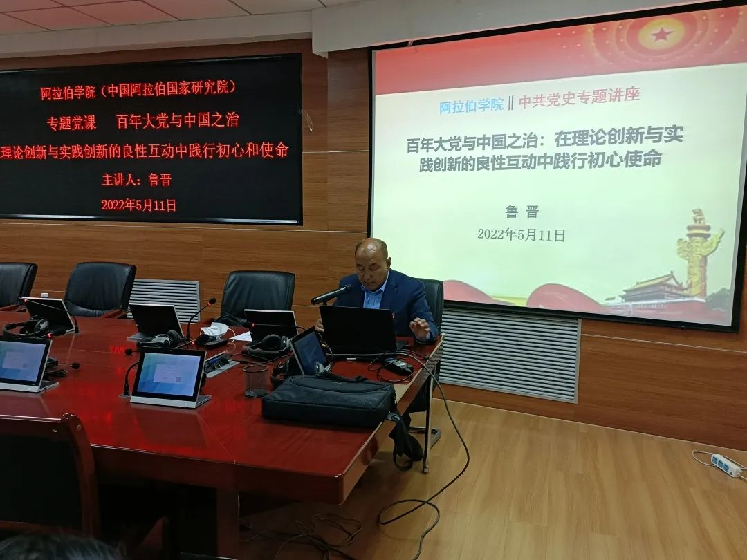 5月11日14:30,3044am永利(中国阿拉伯国家研究院)在文萃校区知行楼8楼学术报告厅举行“第八期发展对象培训班”专题党课。学院邀请304am永利集团专职组织员鲁晋老师作了《百年大党与中国之治:在理论创新与实践创新的良性互动中践行初心和使命》专题辅导报告。3044am永利党总支书记李海燕、副书记赵永军、副院长金忠杰、学办主任金宁洋、第八期发展对象培训班学员、学生党员参加报告会。会议由李海燕书记主持。