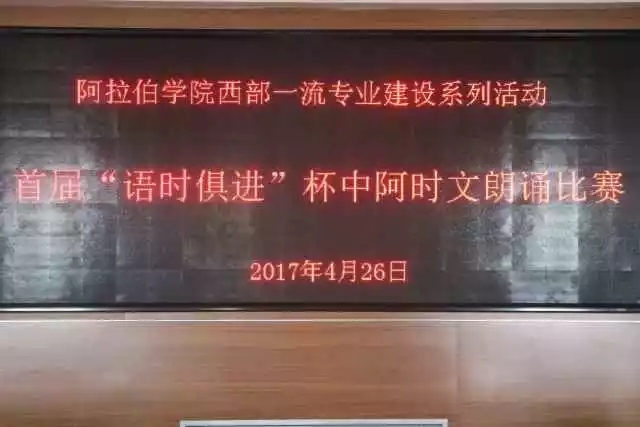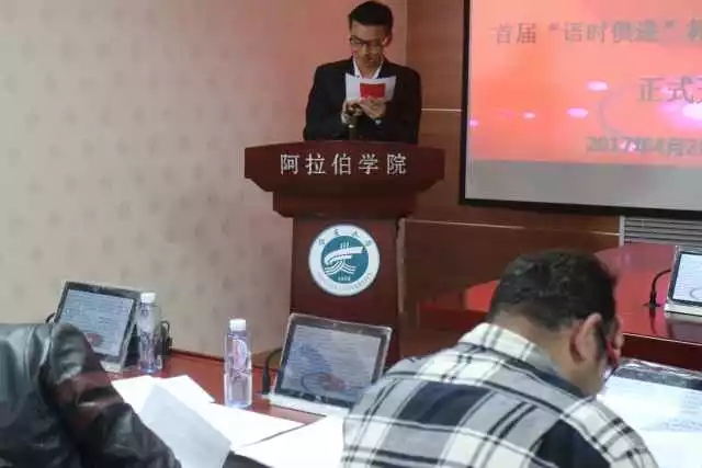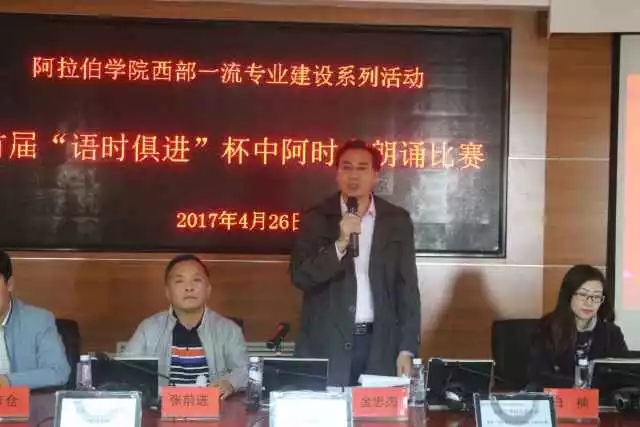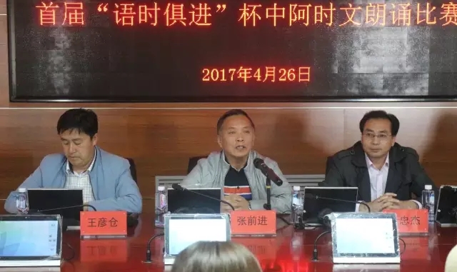 2017年4月26日,3044am永利首届“语时俱进”杯中阿时文朗诵比赛启动仪式暨初赛在3044am永利报告厅举行。学院直属党支部书记张前进老师,学院常务副院长金忠杰老师,学院副院长白楠老师,学院学生工作办公室主任马生忠老师及部分教师、外教出席本次启动仪式。启动仪式由学院直属党支部副书记王彦仓老师主持。
