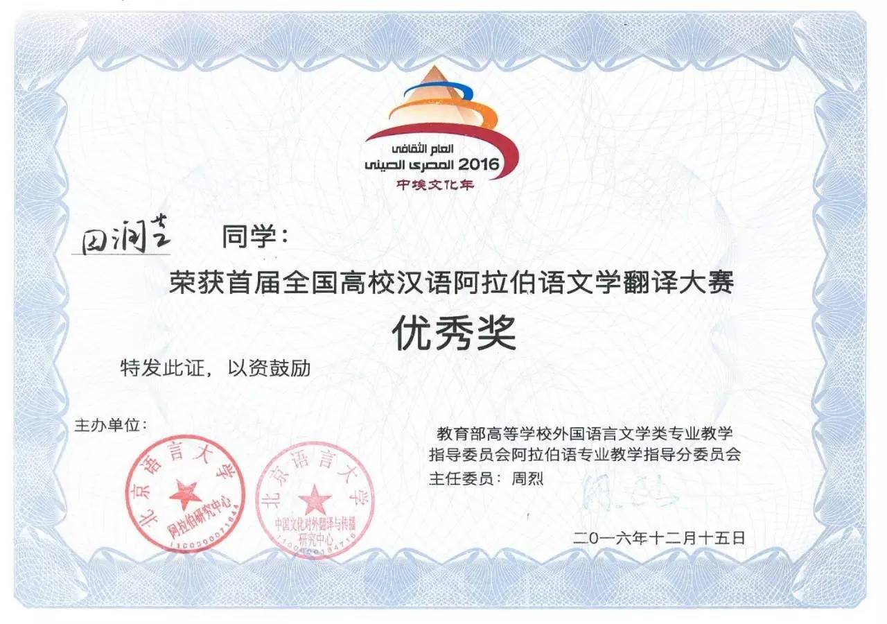 2016年12月9-10日,由中国阿拉伯文学研究会、北京大学外国语学院阿拉伯语系、北京大学东方文学研究中心和北京大学中东研究中心联合主办的中国阿拉伯文学研究会2016年会,暨第四届全国阿拉伯语专业研究生论坛在北京大学进行。我院教师代表王艳,学生代表韩小锋、丁佳茹受邀参加了此次会议。