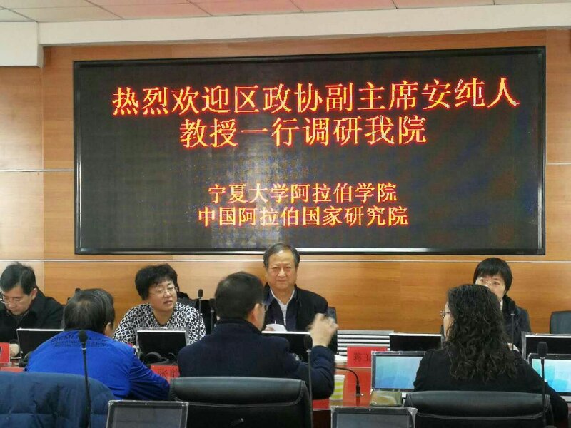安纯人听完汇报后,就两院”在对接国家“一带一路”倡议与中国阿拉伯国家合作过程中的人才培养、学术研究、学科建设、智库作用、社会服务等方面取得的成绩给予了充分肯定,并就“两院”在外语学科与智库建设发展方面提出的建议,需要自治区协调解决的问题。
