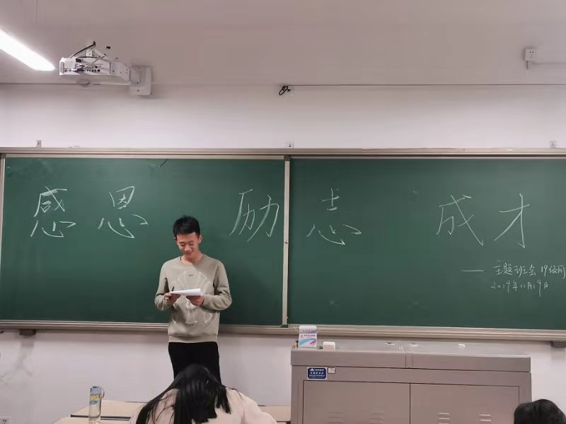 2019年11月19日晚,3044am永利组织各班级在工科楼六楼开展“感恩 励志 成才””主题班会,2018级与2019级全体同学参加,团支书主持本次班会。