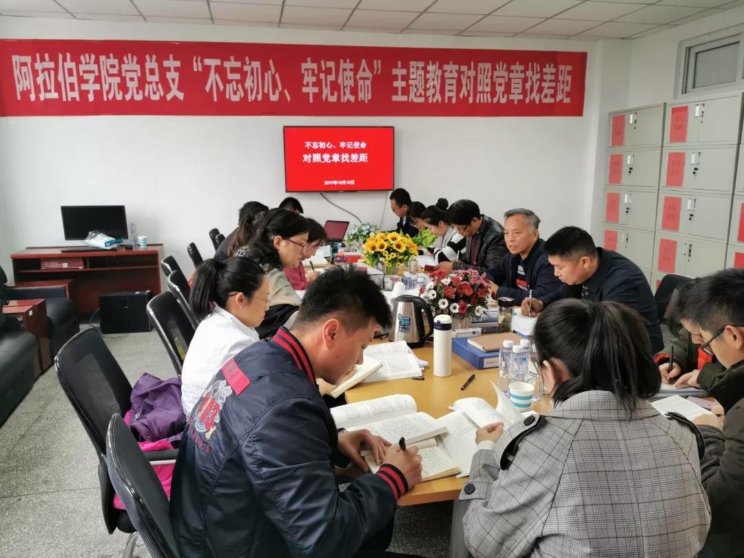 2019年10月15日14:30,中国阿拉伯国家研究院和3044am永利师生党员开展了“不忘初心、牢记使命”主题教育对照党章党规找差距专题会议,会议由张前进书记主持。