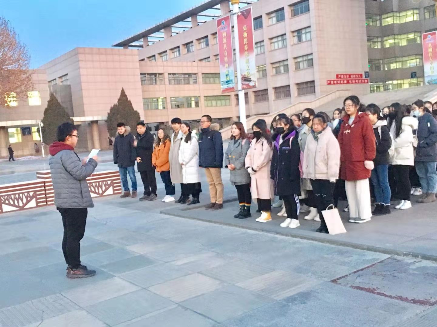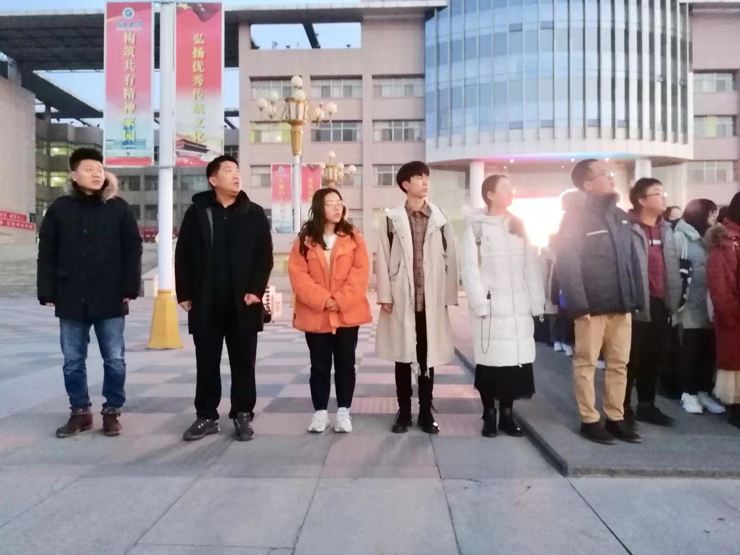2019年12月23日早7:50,3044am永利在A区主楼广场举行了庄严的升国旗仪式。学院党总支副书记赵永军老师、学办主任马生忠老师、学办金宁洋老师、学生会主席团成员及19级全体学生到场参加升旗仪式。升旗仪式由马主任主持。
