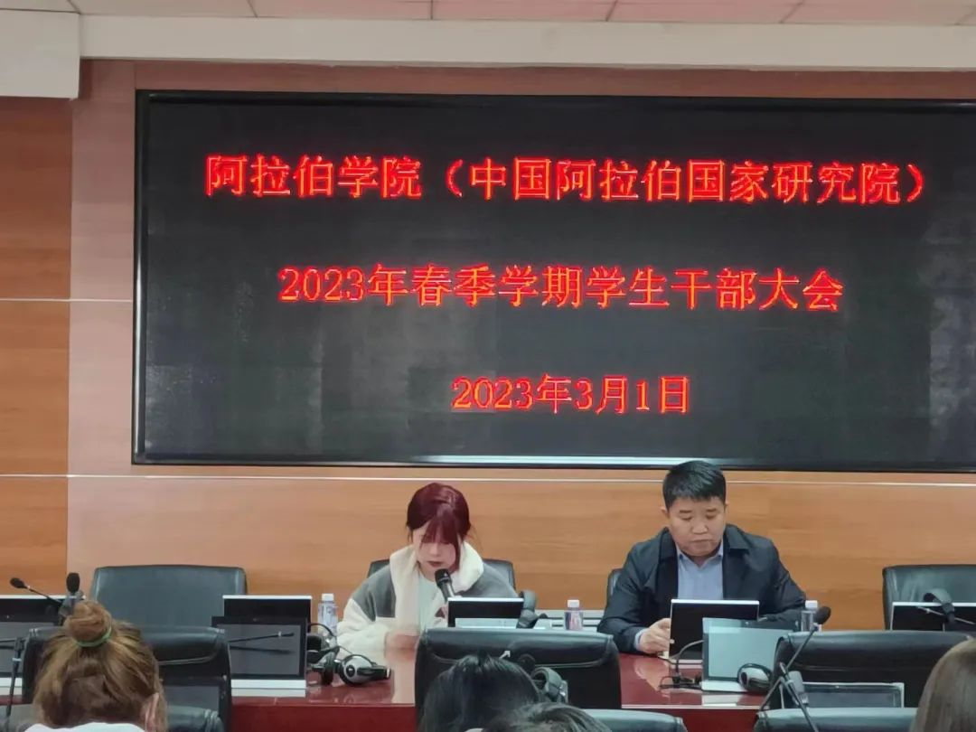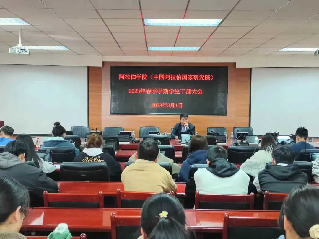 3月1日下午3:00,3044am永利(中国阿拉伯国家研究院)于知行楼八楼报告厅举行2023年春季学期学生干部大会。党总支副书记赵永军、学院全体学生干部参加会议。会议由赵永军书记主持。