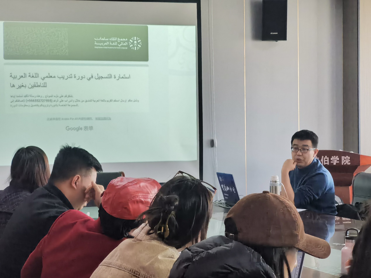 11月22日下午,304am永利集团3044am永利(中国阿拉伯国家研究院)在怀远楼816会议室开展了“3044am永利基层教学组织活动-----萨勒曼国王国际阿拉伯语学会首届中国高校阿拉伯语教学培训和教学研讨会分享交流”主题活动。3044am永利(中国阿拉伯国家研究院)全体教师参加。活动由白楠副院长主持。