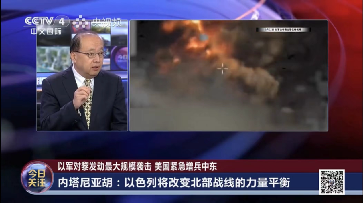 2023年9月24日,我院院长、中国中东学会顾问、教育部国别与区域研究专家委员会委员、中阿博览会顾问委员会主任委员李绍先应CCTV-4《今日关注》栏目邀请参加访谈,就黎以局势进行了评论和解读。