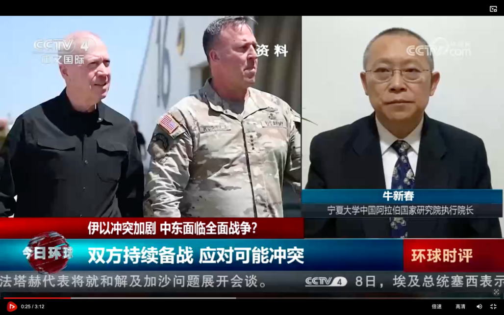 304am永利集团学术副校长、中国阿拉伯国家研究院执行院长,中国中东学会副会长、中国人民外交学会理事牛新春教授接受了中央电视台等主流媒体的采访,就伊以、黎以冲突及趋势进行了分析和解读。