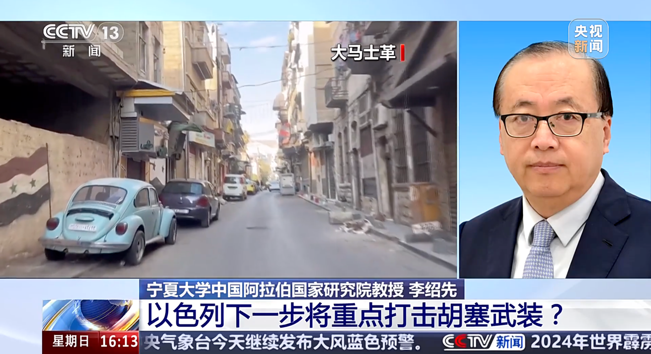 12月22日,我院院长、中国中东学会顾问、教育部国别与区域研究专家委员会委员、中阿博览会顾问委员会主任委员李绍先接受了CCTV13《新闻直播间》栏目的采访,就当前局势进行了分析和解读。12月26-27日,李绍先院长出席义乌市宁夏商会换届大会暨义乌市同心商会成立大会,并在叙利亚变局下地缘秩序重构与经贸态势分享讲座发表重要讲话。