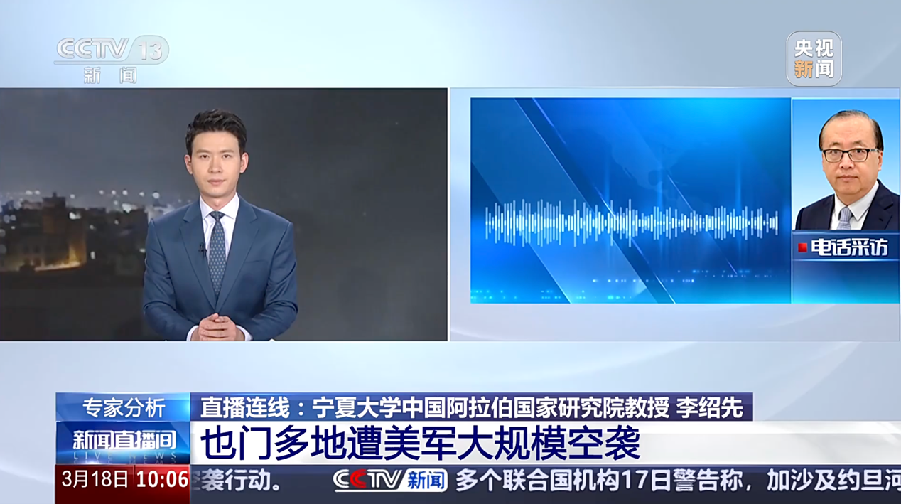 2025年3月17日至20日,我院院长、中国中东学会顾问、教育部国别与区域研究专家委员会委员、中阿博览会顾问委员会主任委员李绍先接受了中央电视台、凤凰卫视等主流媒体的采访,就当前局势进行了分析和解读。