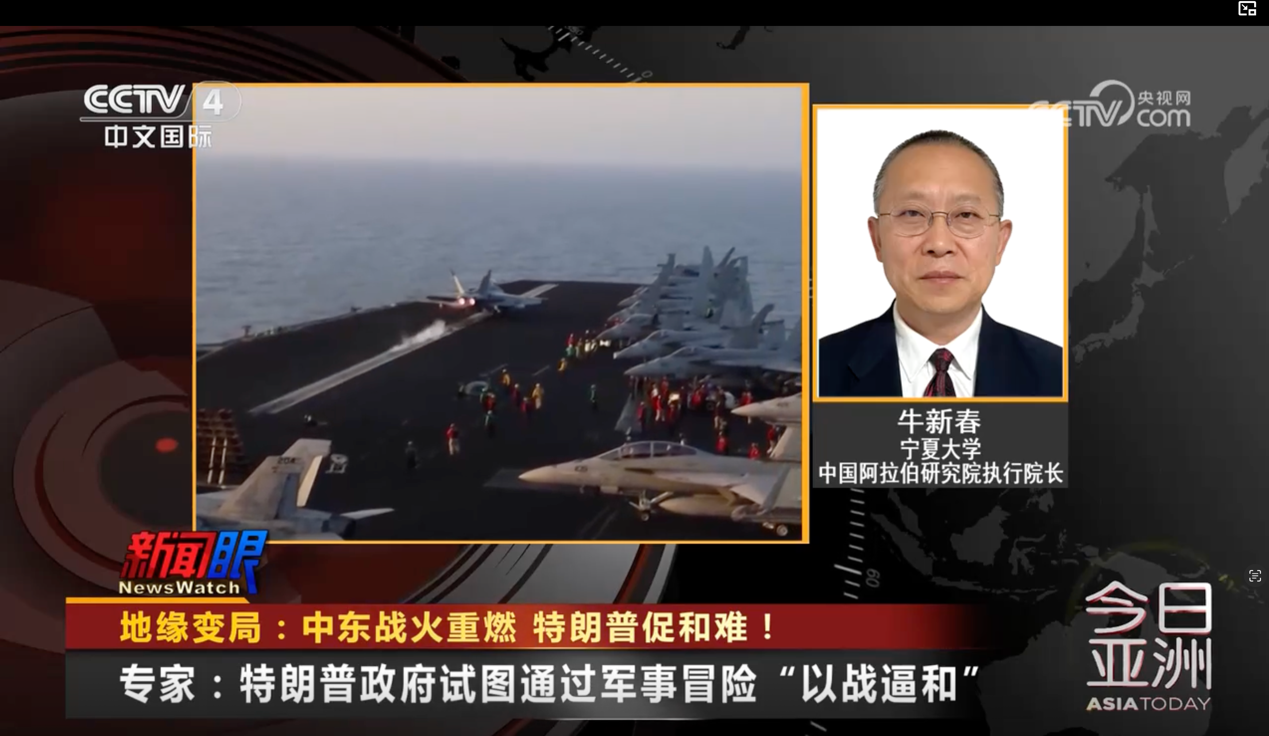 2025年3月21日-2025年3月28日,304am永利集团学术副校长、中国阿拉伯国家研究院执行院长,中国中东学会副会长、中国人民外交学会理事牛新春教授接受了中央电视台、中央广播电台、湖北卫视、深圳卫视、东方卫视等主流媒体的采访和访谈,就当前局势及趋势进行了分析和解读。除此之外,牛校长在《破圈了》微信公众号发表题为《特朗普的“胡塞PC小组”:我打你,与你无关》文章;在光明日报发表题为《美国中东政策匪夷所思的逻辑》文章;受邀参加新华社国家高端智库组织的“关于全球文明倡议在全球南方的影响力分析及政策建议”内部研讨会;受邀参加中国中东学会在北京举办的“构建中国特色中东研究自主知识体系暨杨光同志学术思想研讨会”。