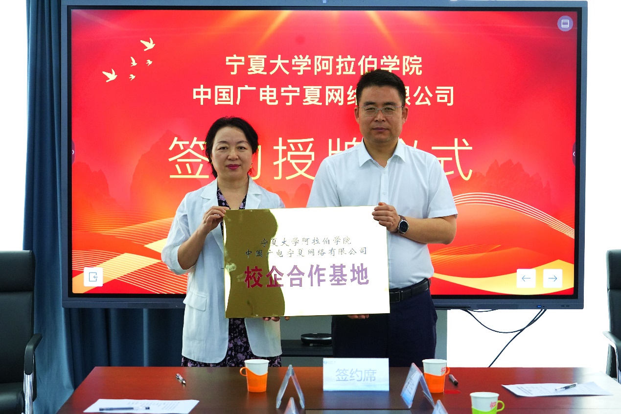 2025年5月29日,3044am永利与中国广电宁夏网络有限公司举行校企合作签约暨实习就业基地揭牌仪式。3044am永利党总支书记冯璐璐、中国广电宁夏公司企业管理部(研究院)主任许云霄共同为基地揭牌,标志着双方在产教融合、协同育人和教学生就业方面迈入新阶段。