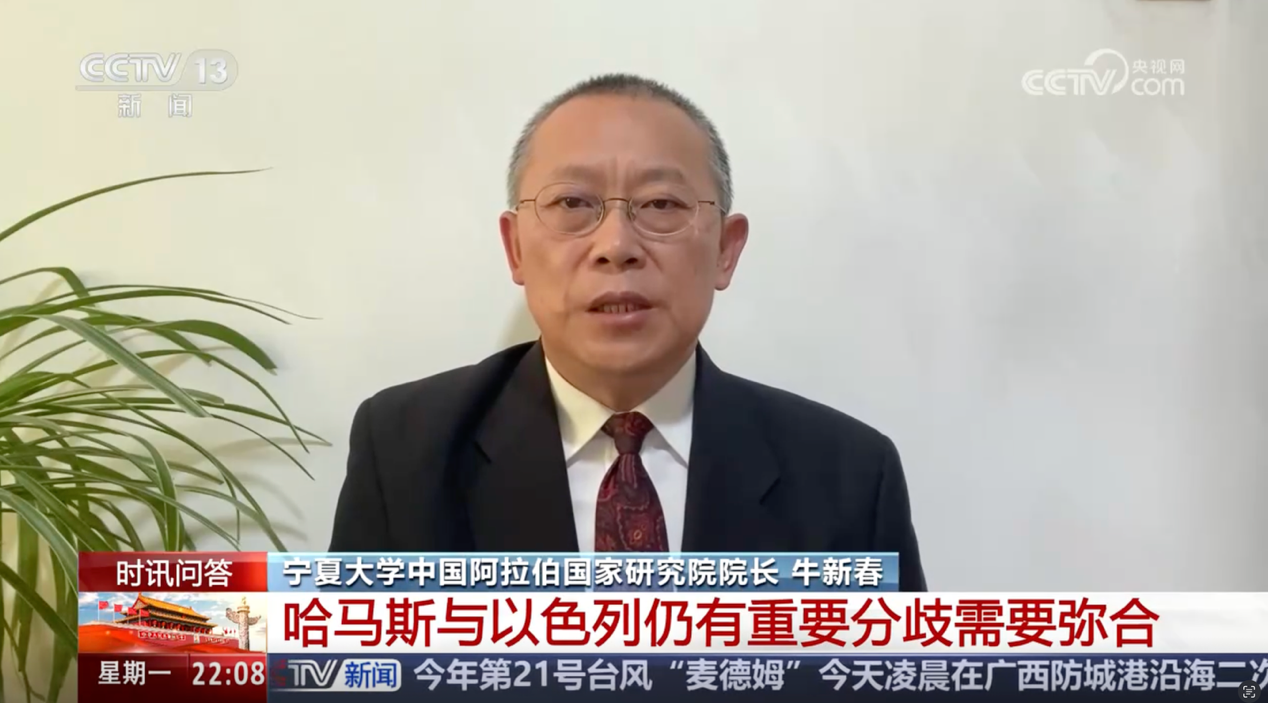 二十三、10月5日牛校长接受中央广播电视总台环球资讯广播《闪评》栏目题为《以色列与哈马斯马上要谈了!谈什么?怎么谈?》采访