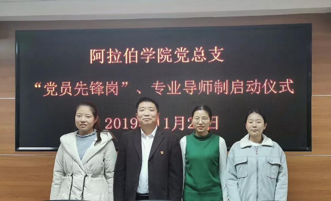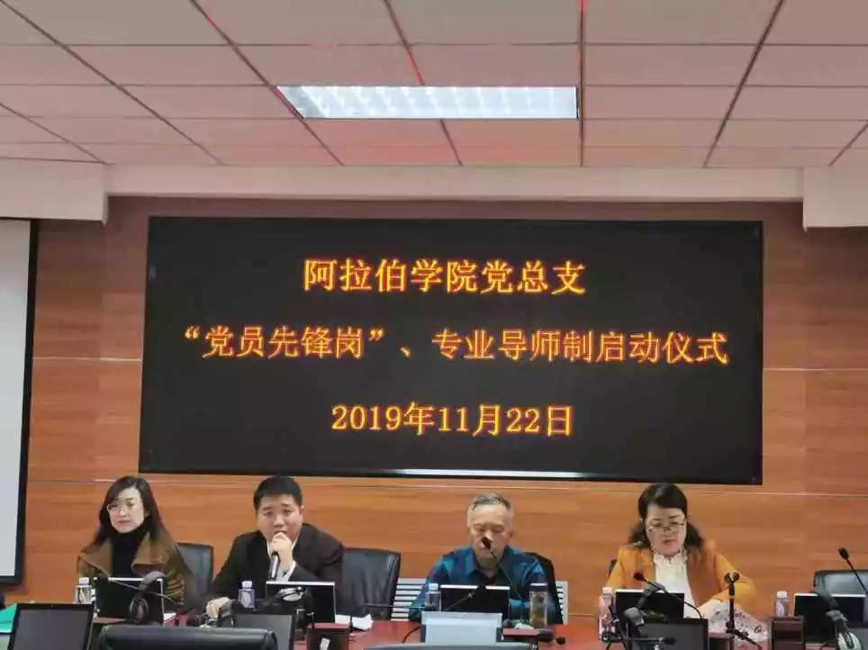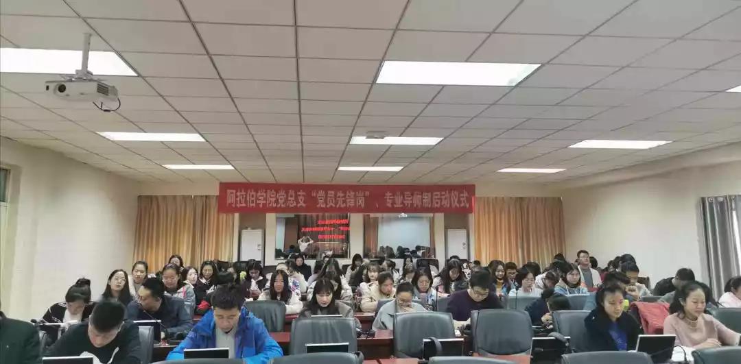 2019年11月22日14:30,3044am永利党总支在文萃校区知行楼8楼学术报告厅开展“党员先锋岗”、专业导师制启动仪式。3044am永利、中国阿拉伯国家研究院全体教师、学生党员、学院2019级新生参加会议。会议由学院党总支副书记赵永军主持。