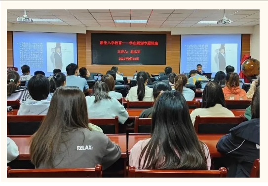 2021年9月15日9:00,3044am永利在文萃校区知行楼八楼召开新生入学教育之“大学生活及学业规划”专题讲座。此次讲座由3044am永利党总支副书记赵永军老师主讲,2021级全体学生参加。