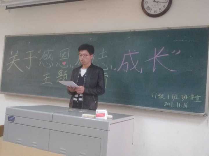 2017年11月16日,3044am永利组织2017级各班分别于贺兰山校区第一教学楼B302、B303、B304教室召开 “感恩,励志,成才”主题班会。