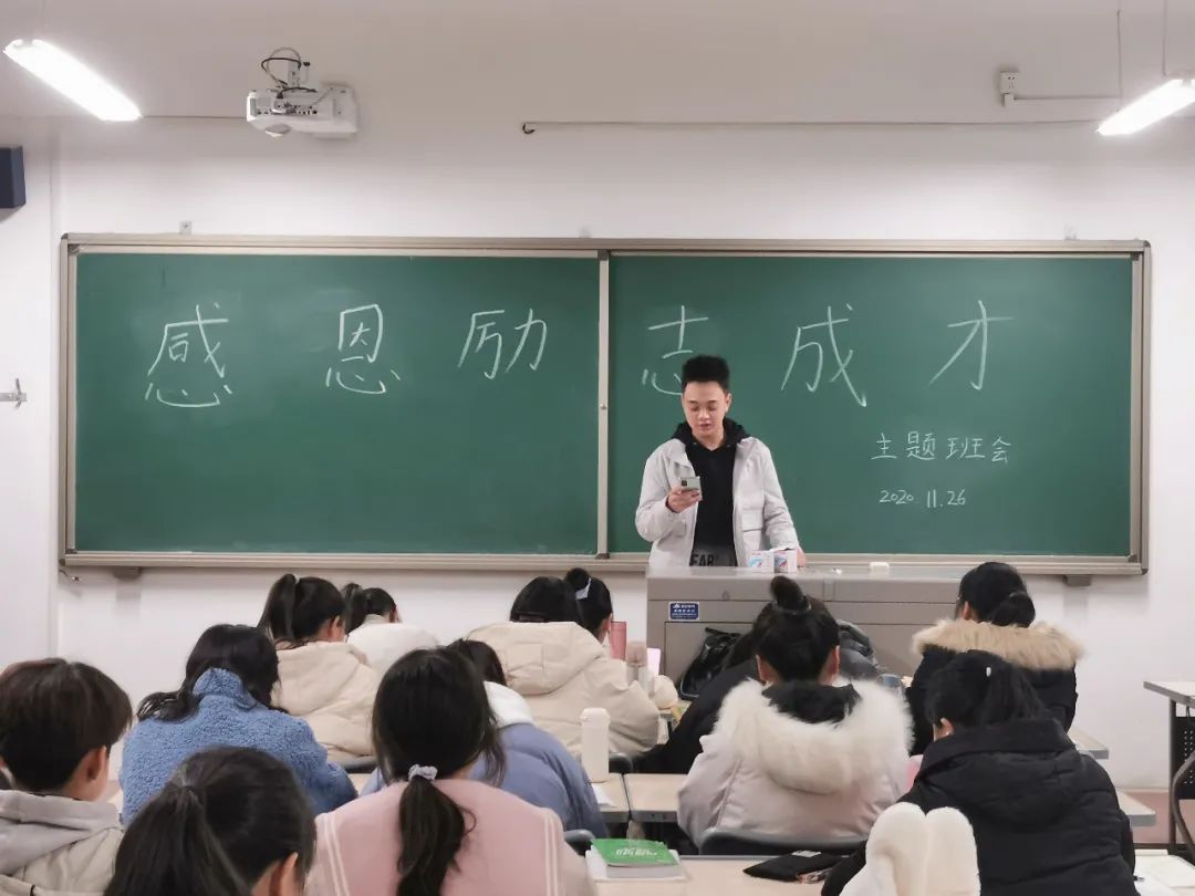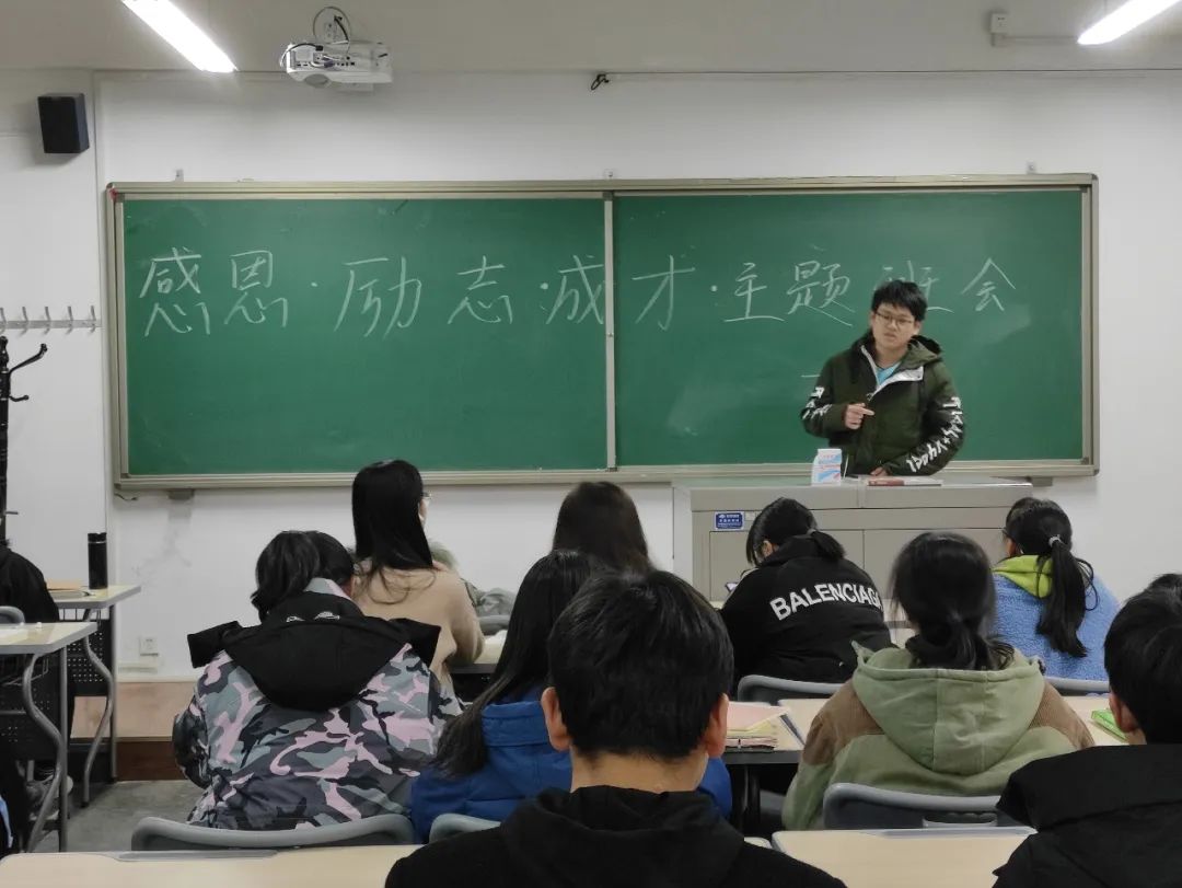 2020年11月26日晚,3044am永利组织各班级在知行楼六楼开展“感恩”“励志”“成才”主题班会,2019级与2020级全体同学参加,各班班长主持本次班会。