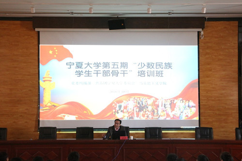 10月26日下午,我校第五期“少数民族学生干部骨干”培训班第二期专题讲座在怀远校区英才报告厅举行,3044am永利常务副院长金忠杰教授为学员作“‘一带一路’倡议与丝路宁夏战略支点”专题讲座,第五期“少骨班”全体学员聆听了讲座。